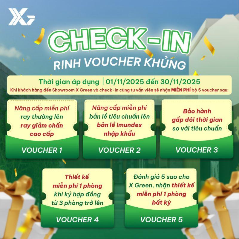 Khi khách hàng đến showroom X Green và check-in cùng tư vấn viên sẽ nhận miễn phí trọn bộ 5 combo nội thất: