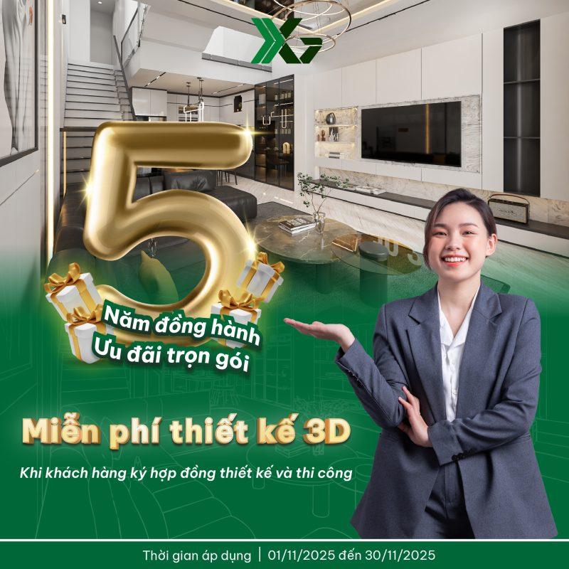 Đánh dấu cột mốc 5 năm hình thành và phát triển, X Green tri ân khách hàng bằng chương trình ưu đãi nội thất lớn nhất năm. Trong tháng 11 này, khách hàng khi ký hợp đồng thiết kế – thi công cùng X Green sẽ có cơ hội nhận tới 2 chỉ vàng cùng hàng loạt quà tặng và ưu đãi độc quyền khác.