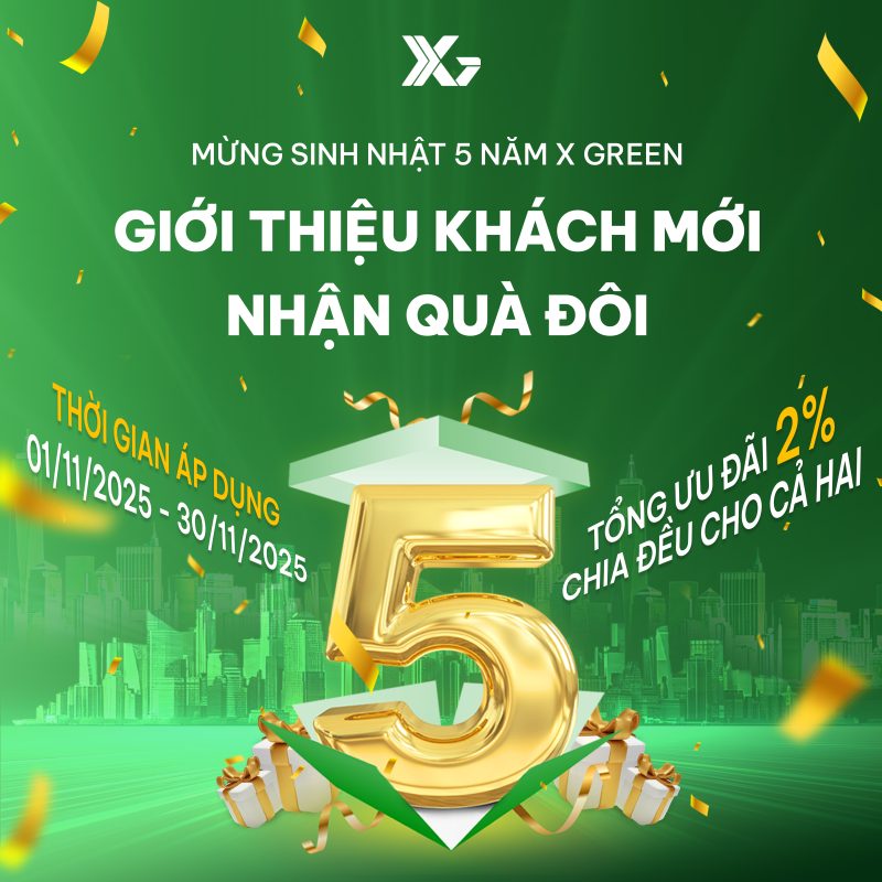 - Áp dụng đồng thời với các chương trình khuyến mãi khác trong tháng sinh nhật X Green, với phần trăm chiết khấu cho khách hàng ký hợp đồng lên đến 10%.