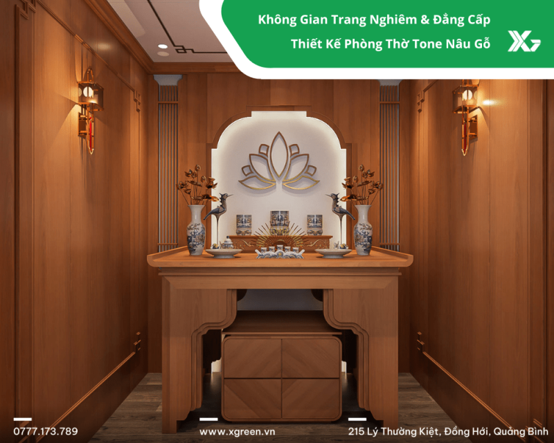 Tone nâu gỗ không chỉ giúp không gian thờ cúng trở nên trang nghiêm, sang trọng mà còn mang lại sự bình an, tài lộc cho gia chủ. Nếu bạn đang có nhu cầu thiết kế phòng thờ tone nâu gỗ, hãy liên hệ ngay với X Green để được tư vấn chi tiết và sở hữu một không gian thờ cúng đẹp, chuẩn phong thủy!